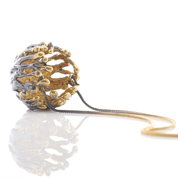 This powerful orb radiates warm light as oxidised silver fades to gold. The pendant comes with 3 variable chain lengths so you can easily change it to suit your style. Orb diameter - 3.5cm average